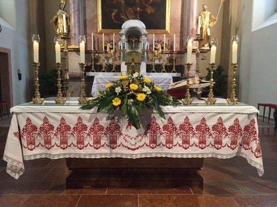 Diese Altartücher haben Erna und Evelyne Zeiler 2014 für unsere Pfarrkirche St. Gallen gestickt.